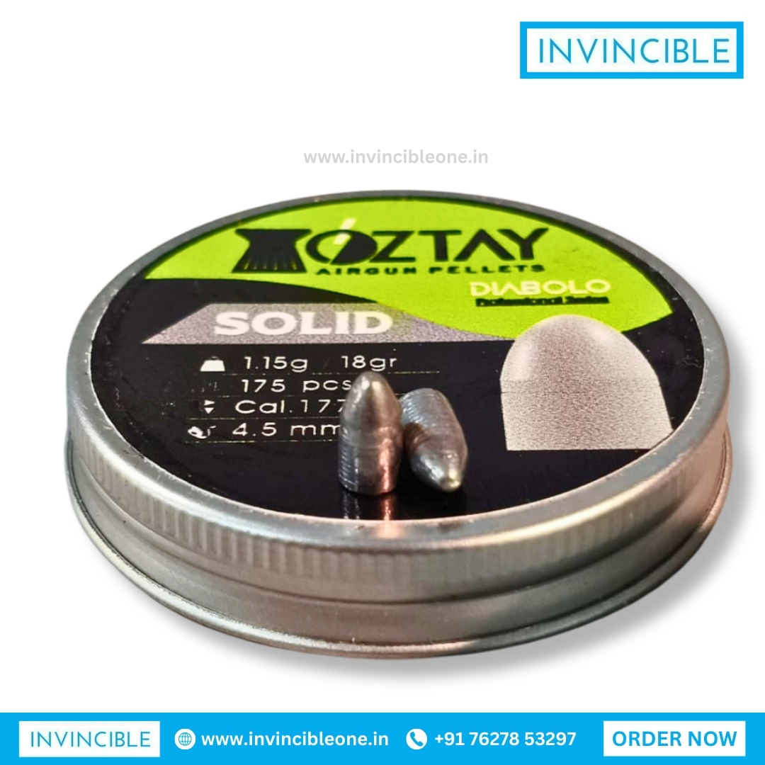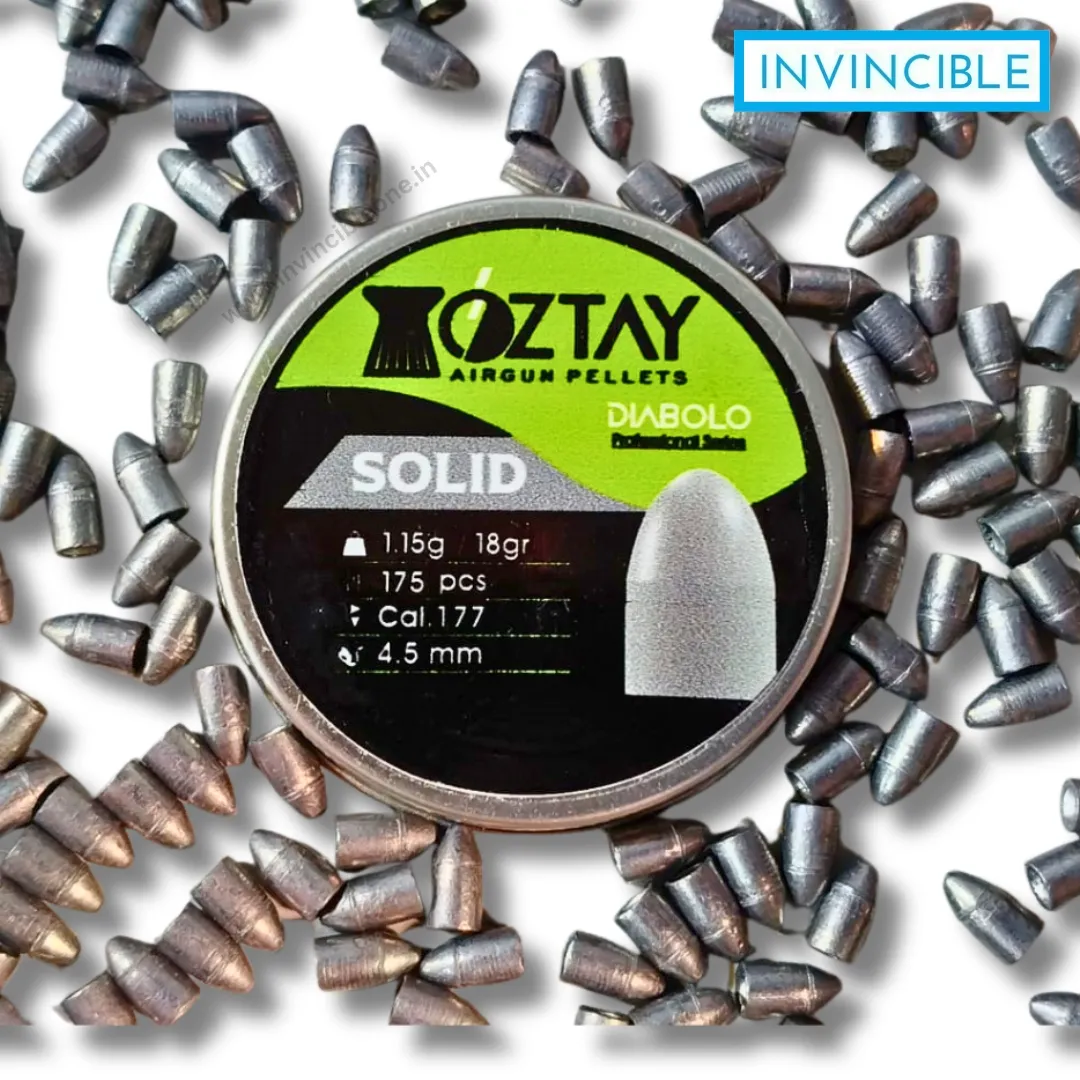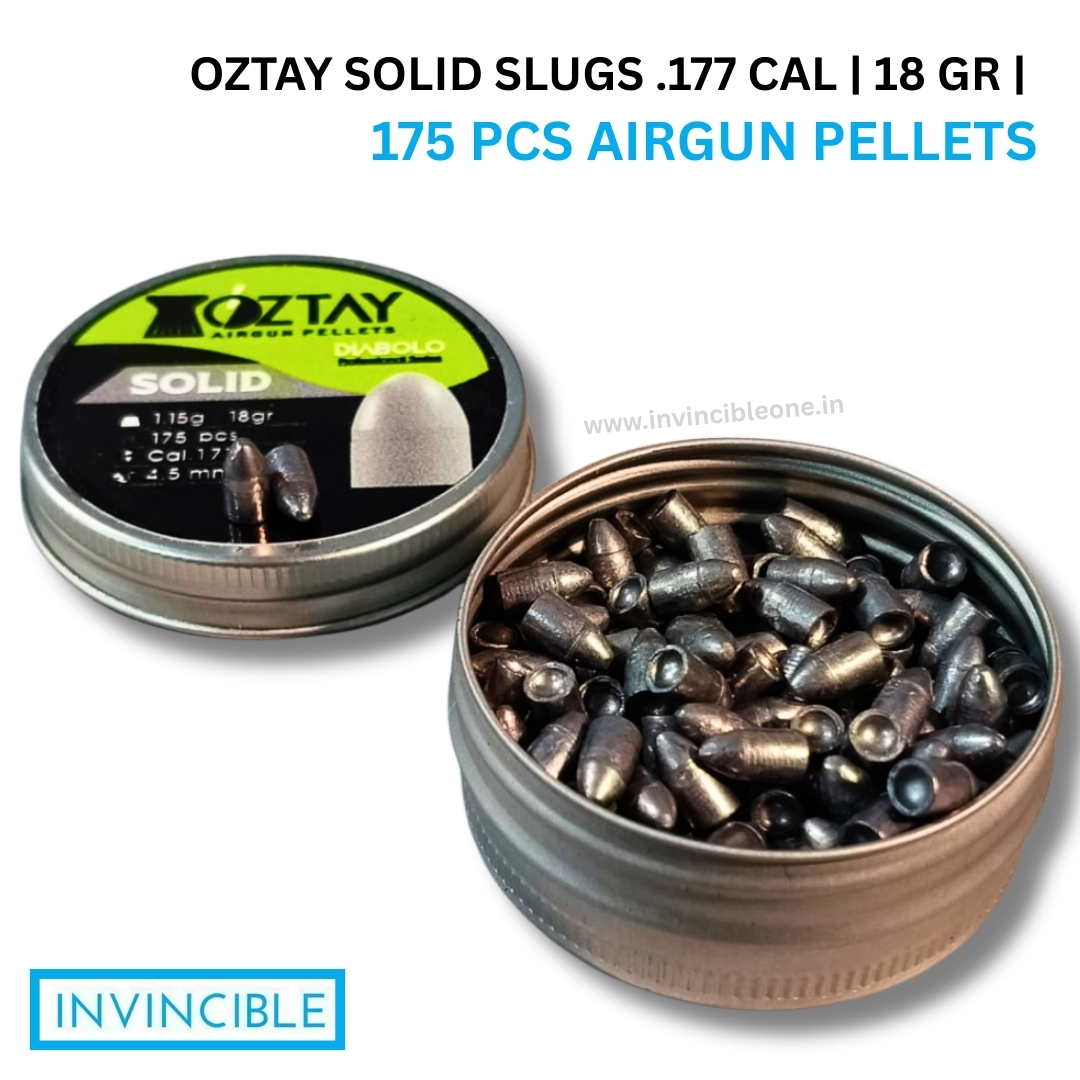 Oztay Solid Slugs .177 Cal – heavy 18-grain solid slugs (175 pcs) engineered for high penetration, consistent flight and dependable performance in medium-to-high-power airguns. Ideal for precision pest control, field target practice and small-game