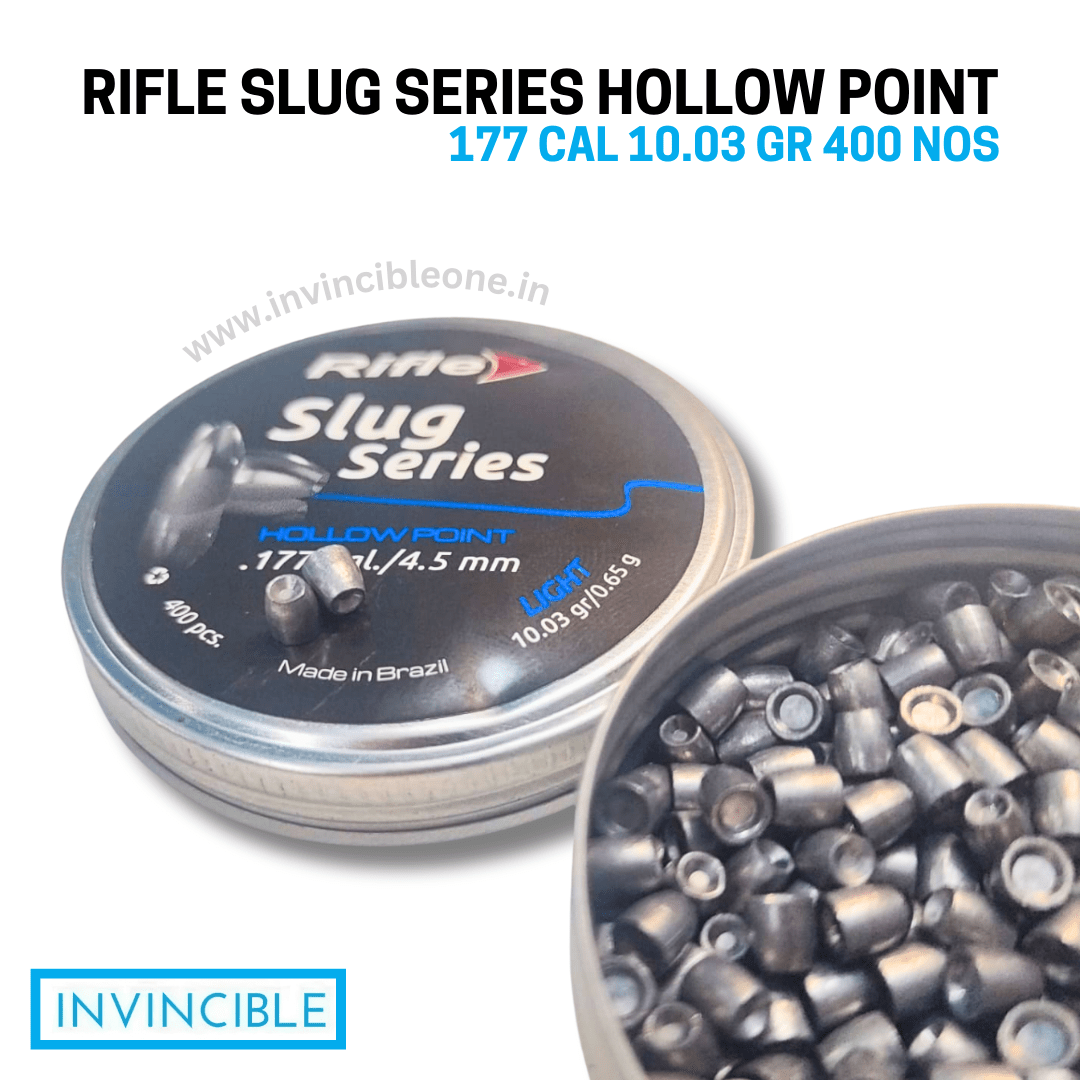 High-precision .177 caliber hollow point slugs. 10.03 grains weight, ideal for maximum expansion. Tin of 400.
