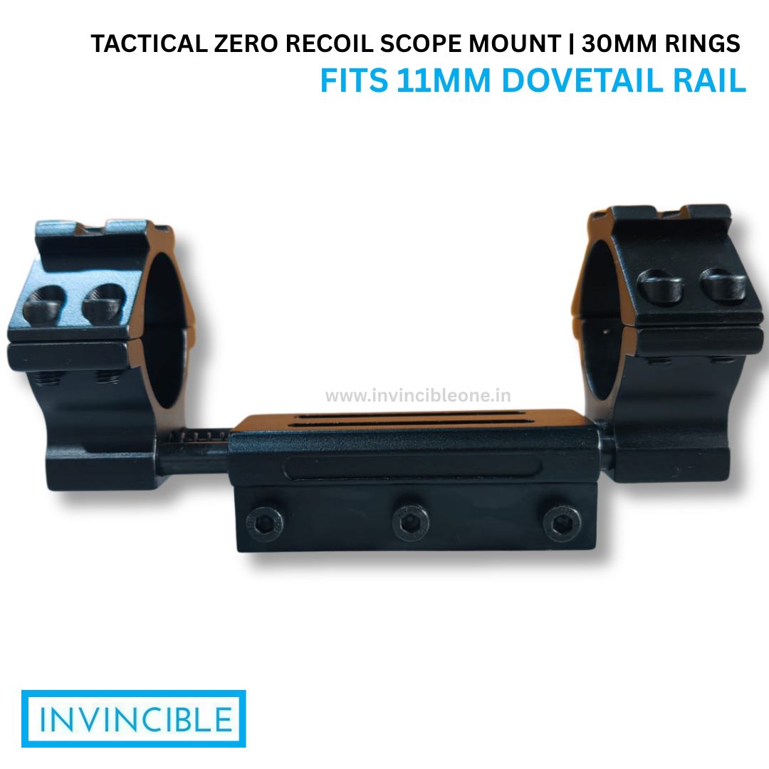 Heavy-duty zero recoil scope mount with 30mm rings, designed for 11mm dovetail rails to ensure maximum stability and accuracy.